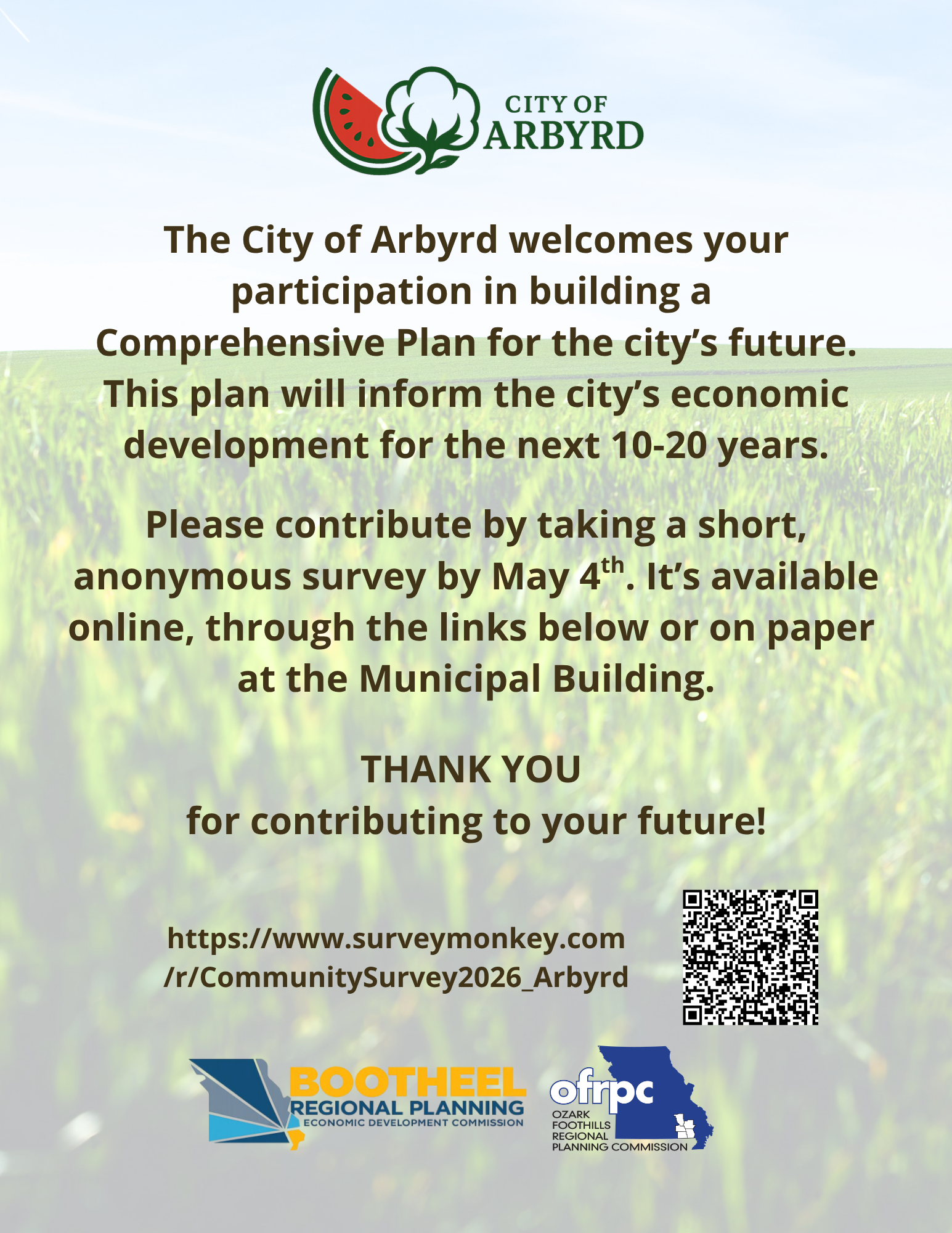 Below you will find links to online surveys that will benefit Arbyrd planning.